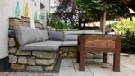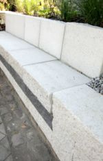 Im modernen Garten werden gerne Beton-Mauersteine verwendet, die wir zu einer geradlinigen Mauer aufbauen.